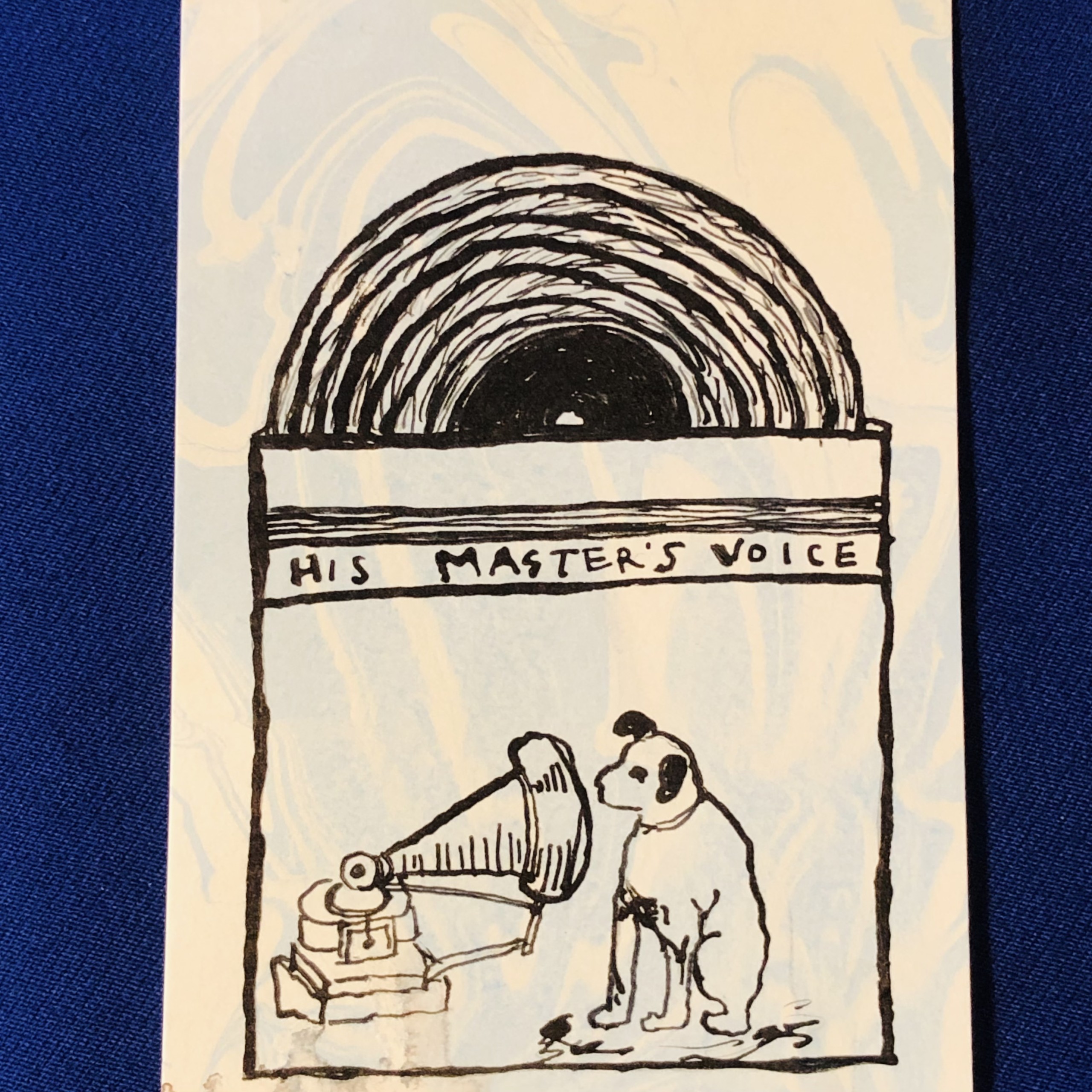 その時の蓄音器は録音・再生ができるシリンダー式でしたが、その後円盤式に画き変えられました。そして、「His Master’s Voice」とタイトルをつけたのです。