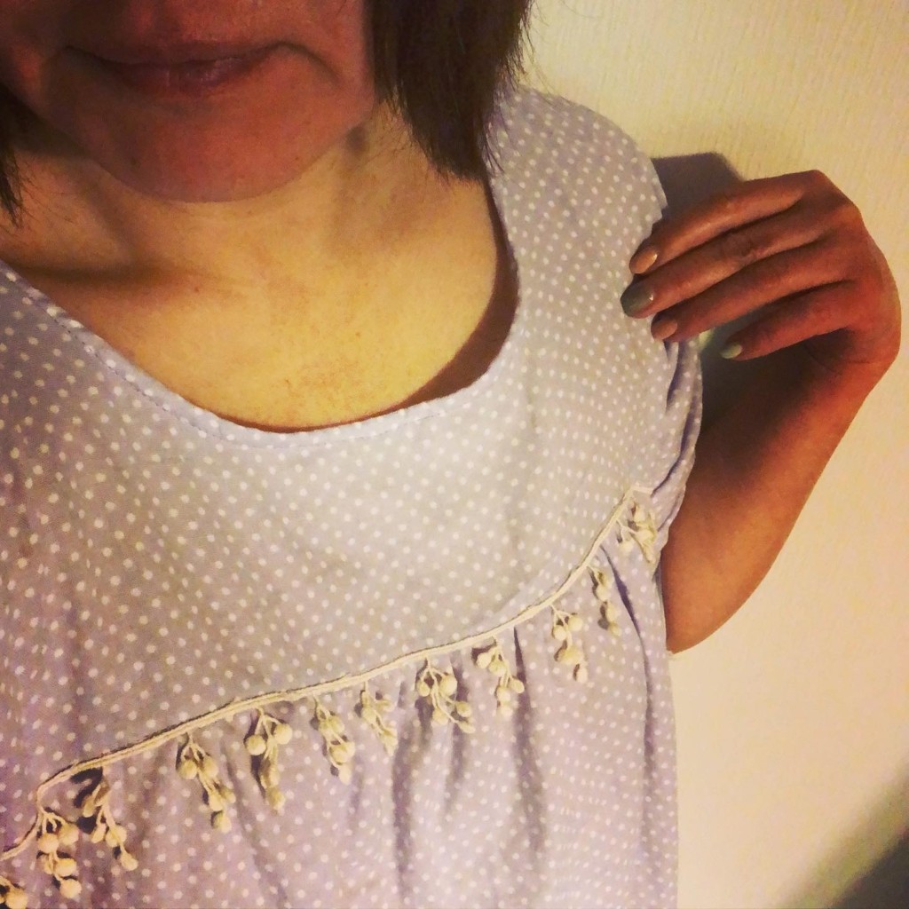 この形は気に入っていて、前に作った夏のパフスリーブのも入れたら3枚目かな。