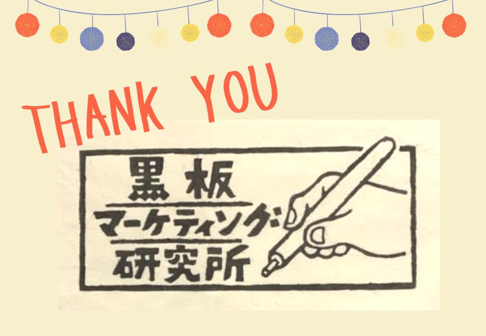 この黒板マーケティングという楽しく意義深いコンテンツは、藍田さんが引き続き発展させてくださると思います。